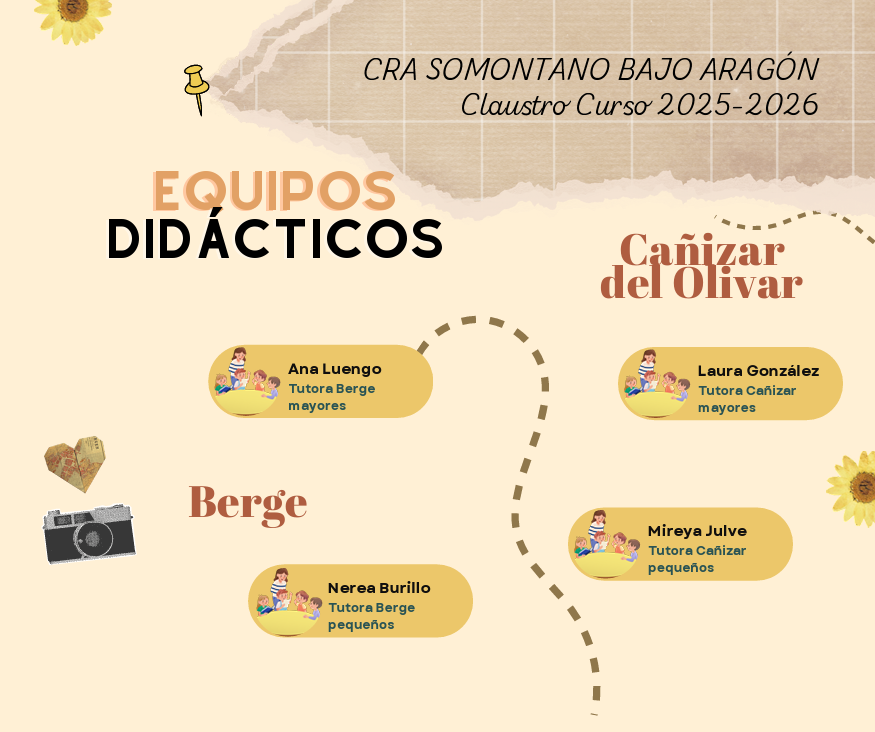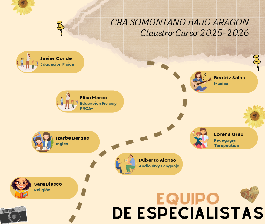 Os presentamos a los docentes que forman parte del Claustro del CRA Somontano Bajo Aragón para el curso 2025-2026: